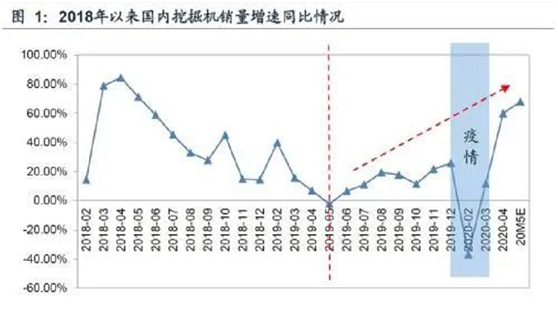 挖掘機銷量爆了!5月猛增68%︱6月增速有望超50%根據中國工程機械工業協會統計數據,2020年5月份,各企業共計銷售各類挖掘機械產品31744臺,同比增長68%,遠超行業預期(增長50%)。其中,國內市場銷量29521臺,同比增長76.32%,