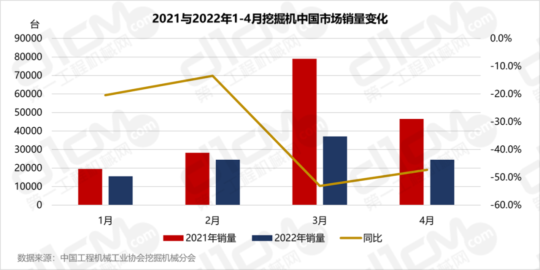 4月挖掘機(jī)銷量降幅收窄,環(huán)比迎來2022年首降
